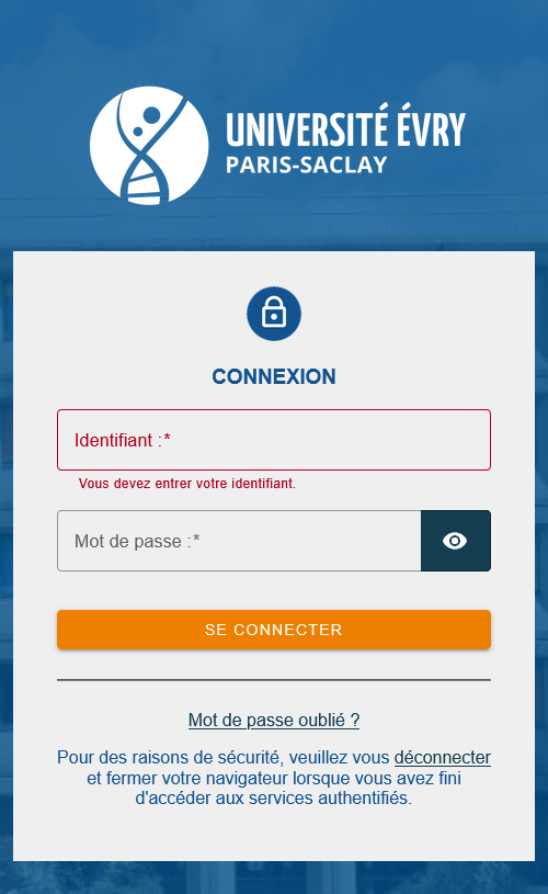 2. Vous serez ensuite redirigé vers l’écran d’authentification de l’Université d’Évry